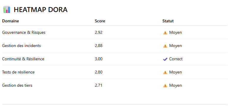 Le diagnostic flash DORA permet d’obtenir rapidement une vision claire de votre niveau de maturité face aux exigences du règlement.
